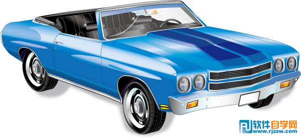 复古蓝色敞篷轿车设计矢量图,由软件自学网会员提供,免费下载,素材为EPS格式,请用illustrator软件打开。