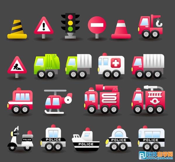 信号灯塔救护车摩托车图标,由软件自学网会员提供,免费下载,素材为EPS格式,请用illustrator软件打开。