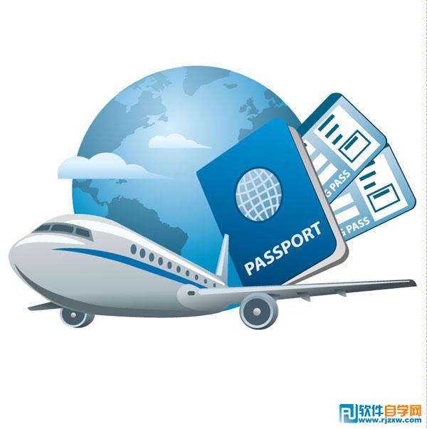 卡通客机和护照设计矢量图(飞机,客机,护照,地球,环球旅游)由软件自学网会员提供,免费下载,素材为EPS格式,请用illustrator软件打开。