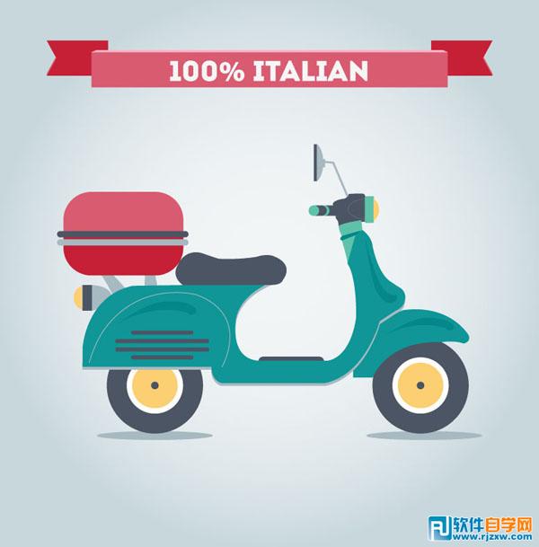 卡通复古电动车矢量图。(电动车,意大利,车,卡通,矢量图)由软件自学网会员提供,免费下载,素材为EPS格式,请用illustrator软件打开。