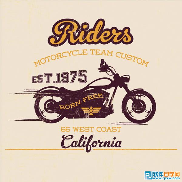 哈雷摩托车背景矢量图(哈雷车,越野摩托车,摩托车,复古,矢量图)由软件自学网会员提供,免费下载,素材为EPS格式,请用illustrator软件打开。