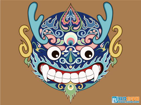 卡通麒麟神兽脸谱矢量图,由软件自学网会员提供,免费下载,素材为EPS格式,请用illustrator软件打开。