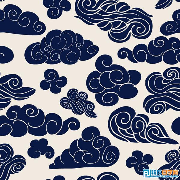 卷云,云层,云,天空,背景,墨蓝色,无缝背景,矢量图,由软件自学网会员提供,免费下载,素材为EPS格式,请用illustrator软件打开。