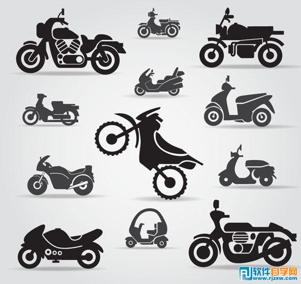 摩托车,电动车,哈雷车,车辆,剪影,矢量图