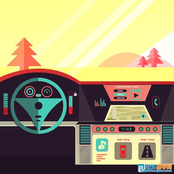 驾驶室,汽车,方向盘,中控,矢量图