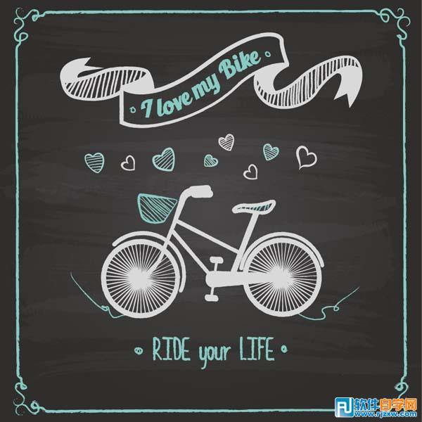 粉笔画,单车,自行车,爱心,花边,丝带边框,海报,矢量图