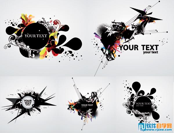 矢量花纹,边框,潮流,墨迹,不规则形状,纹理,水滴形,墨点,时尚元素,矢量图