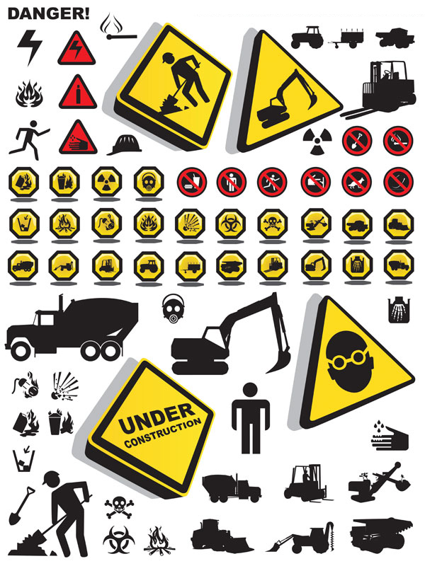 各种施工安全警示标志素材矢量图