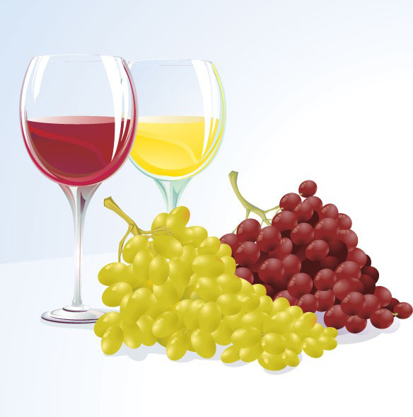矢量水果,葡萄,葡萄酒,红酒,玻璃杯,酒杯