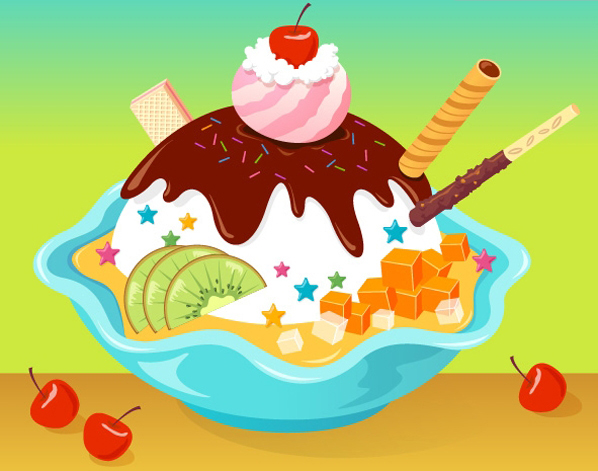 冷饮,饮品,冰淇淋,甜品,夏日饮品,卡通风格,诱人,清凉,水果,奶油,