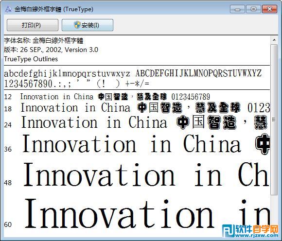 金梅白线外框繁体字体下载