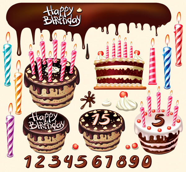 矢量食品,蛋糕,生日蛋糕,巧克力,奶油,蜡烛,火焰,生日快乐,happy