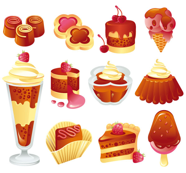 矢量甜点,雪糕, 冰激凌,蛋糕,巧克力,奶昔 樱桃