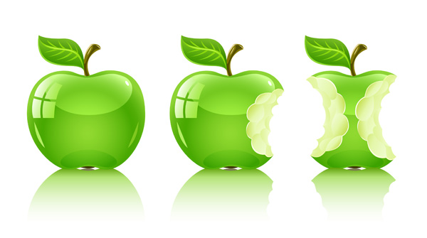 矢量水果,苹果,青苹果,水晶质感,诱人,叶子