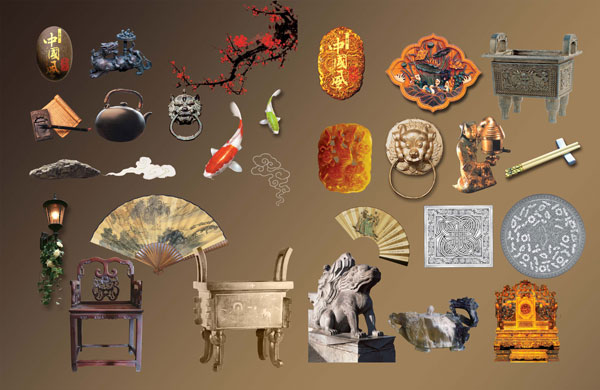 EPS格式,含JPG预览图,关键字:矢量中国,古典元素,狮子,梅花,金鱼,祥云,扇子,矢量素材... │ 王欣