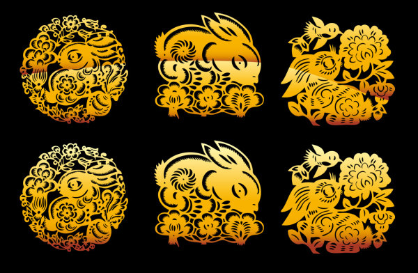 AI格式,含JPG预览图,关键字:矢量剪纸,中国风,兔年,2011年,精美,传统,古典,兔子,植物花卉,小,矢量素材
