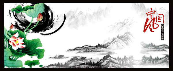 CDR格式,含JPG预览图,关键字:矢量中国风,水墨画,传统,荷花,山水,矢量素材