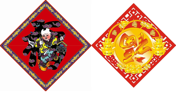 CDR格式,含JPG预览图,关键字:矢量中国风,福字,喜庆,春节,节庆,春联,金元宝,招财进宝,祥云,孩,矢量素材.