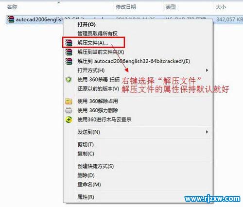 | 软件简介: 第1步、请到软件自学网下载AutoCAD2006英文版,然后用解压软件进行解压文件。