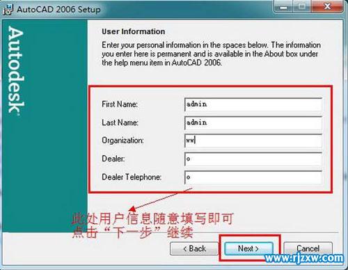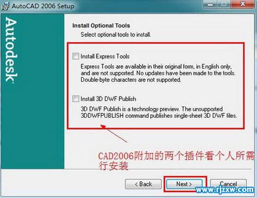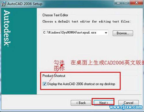 第13步、勾选下面是在桌面上创建CAD2006快捷图标。点击下一步。
