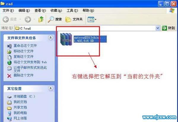 | 软件简介: 第1步、请从软件自学网下载AutoCAD2013 32位,然后进行解压当前的文件夹。