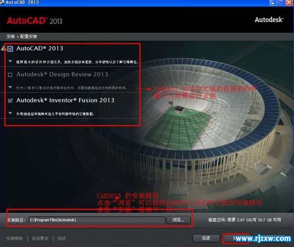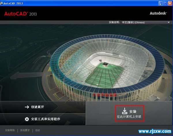 第3步、进入CAD2013安装介绍,安装说明选中文(简体),然后点击安装。
