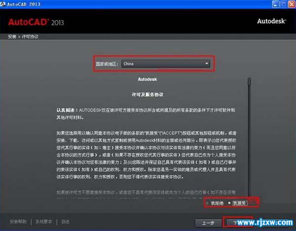 第4步、国家或地区选:China,协议选我接受,点击下一步。