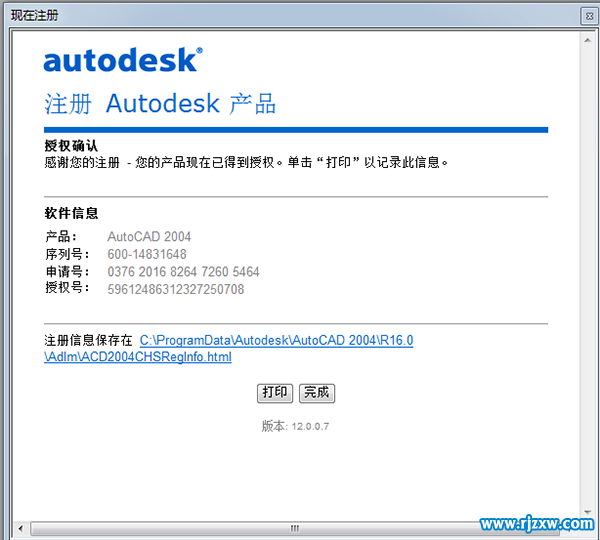 第4步、就这样完成了CAD2004的激活,点击完成就好了。