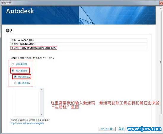 第3步、注意申请号记下来,点击输入激活码,选粘贴激活码,