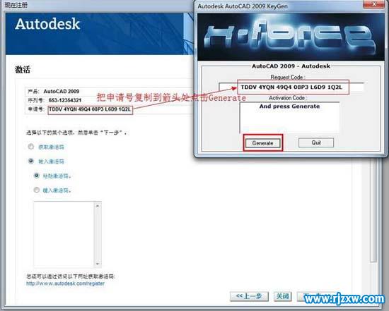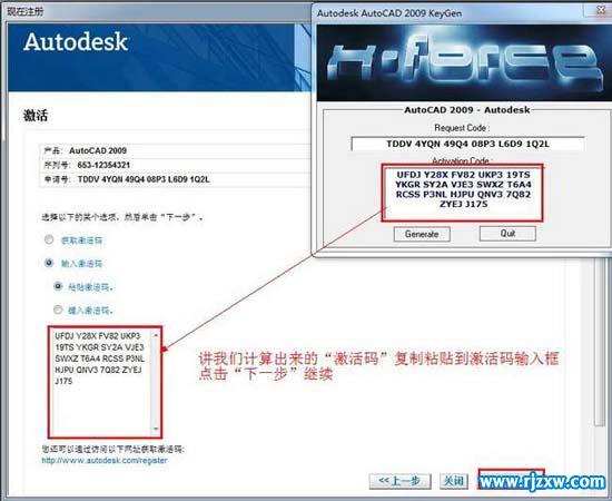 第6步、然后点击Generate获得了激活码,把注册机上面的激活码复制到注册页机里面的激活码框中。点击下一步。