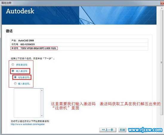 第3步、注意申请号记下来,点击输入激活码,选粘贴激活码,