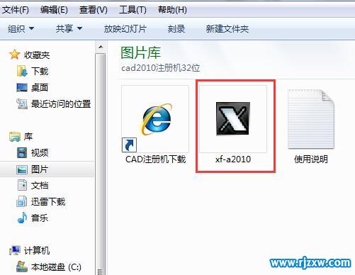 第3步、这时打开从软件自学网下载的CAD2010 32位的注册机。