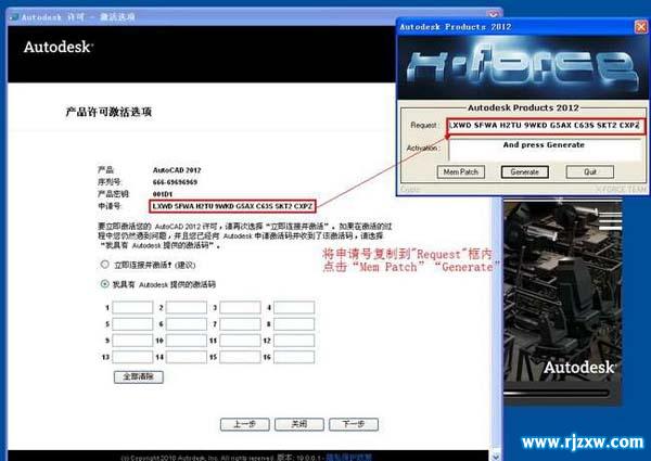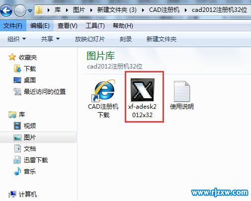 第5步、打开从软件自学网下载的CAD2012 32位注册机,
