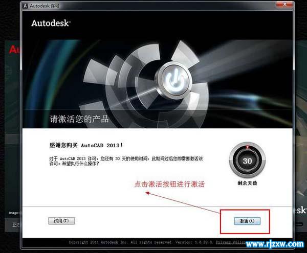 第2步、如果不激活,就点击试用30天,如果要长期使用,就点击激活。