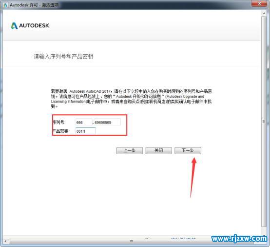 第4步、软件序列号:666-69696969,产品密钥:00I11,点击下一步。