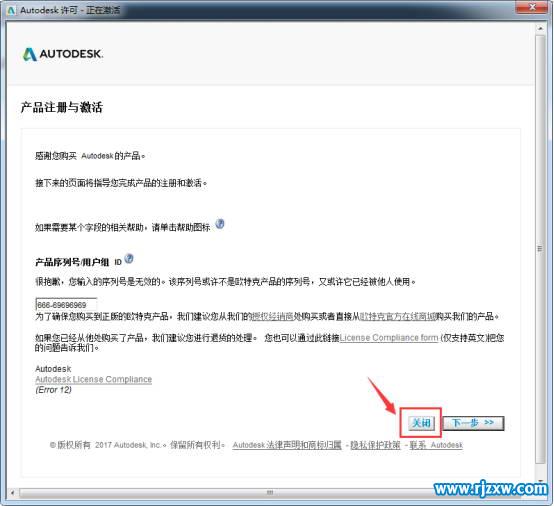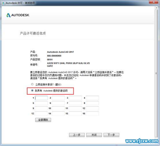 第9步、请记好申请号,选中我具有Autodesk的激活码。