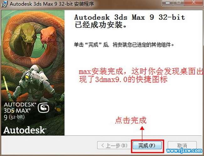 第12步、安装好后,桌面上就有3DMAX9.0 32位软件图标。