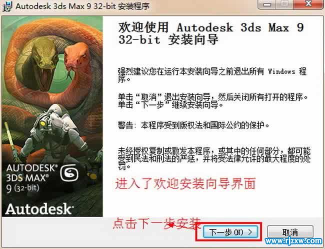 第2步、双击打开3dsmax9.0安装程序,开始安装。