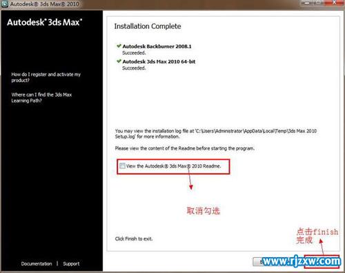 第14步、3dsmax2010 32/64位英文版安装完成,点击完成(finish). 如图一十四。