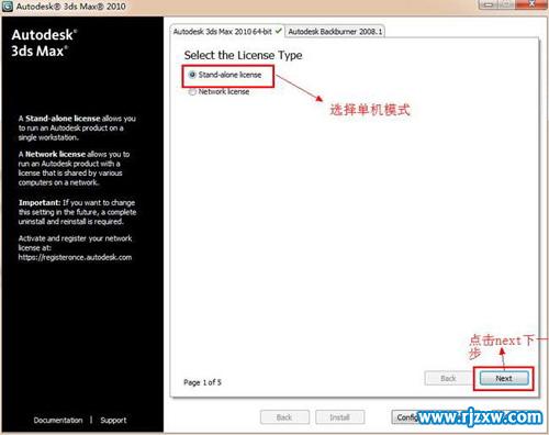 第8步、选择许可模式有分两种,一种是单机模式(stand alone),另外一种是网络模式(network license),选择单机模式。点击next下一步配置。 如图八。