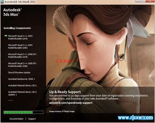 第14步、3dsmax2011 64位英文版正在安装中,等待几分钟。