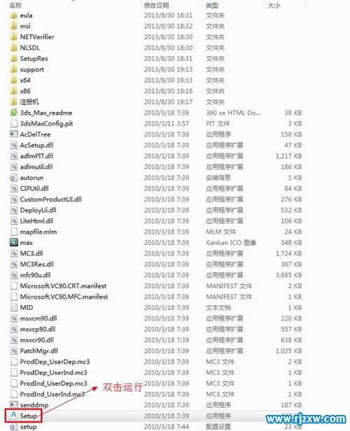 第2步、在3dsmax2011 64位英文版安装包里,找到3dsmax2011 64位英文版的安装程序,双击运行安装程序(setup)。
