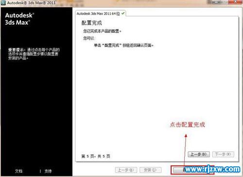 第12步、配置完成,点击配置完成。返回3dsmax2011 32/64位中文版安装界面。