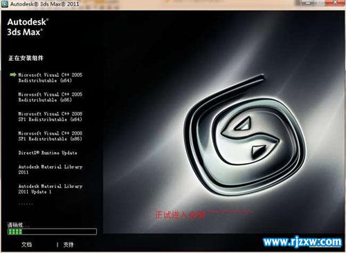第14步、开始安装产品,3dsmax2011 32/64位中文版正在安装中。