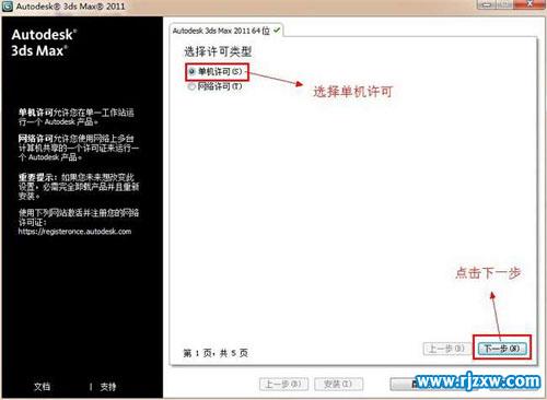 第8步、许可类型有两种,一种是单机诃,另外一种是网络许可。这里选择了单机许可。点击下一步。