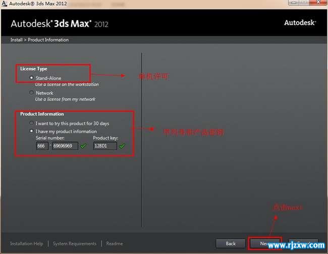 第5步、选择Stand-Alone单机许可,序列号为666-69696969 密钥为128D1,点击Next下一步。