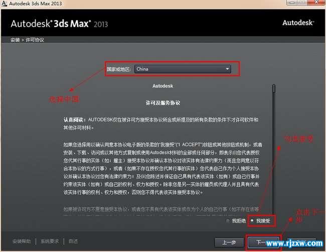 第四步、选中地区为China,选择协议为同意。点击下一步。
