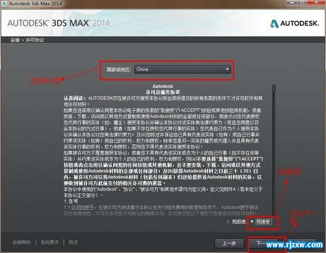 第四步、设置国家或地区为china,许可协议设置我同意。点击下一步。