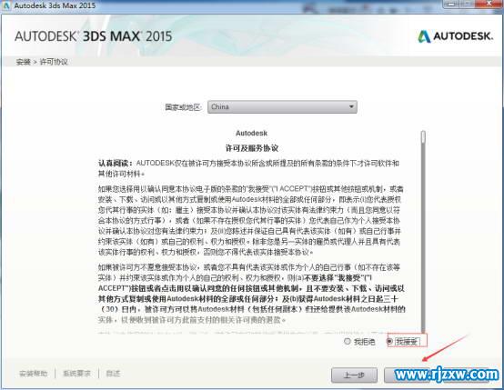第4步、国家或地区选China,协议点击接受,再点击下一步。
