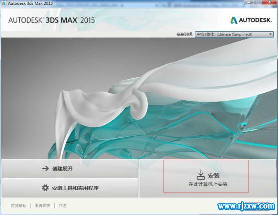 第3步、进入3dmax2015 64位安装的界面,点击安装。